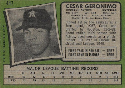 (A word about the back): I was surprised to see that Geronimo played in the Yankees' farm system. I never knew that.